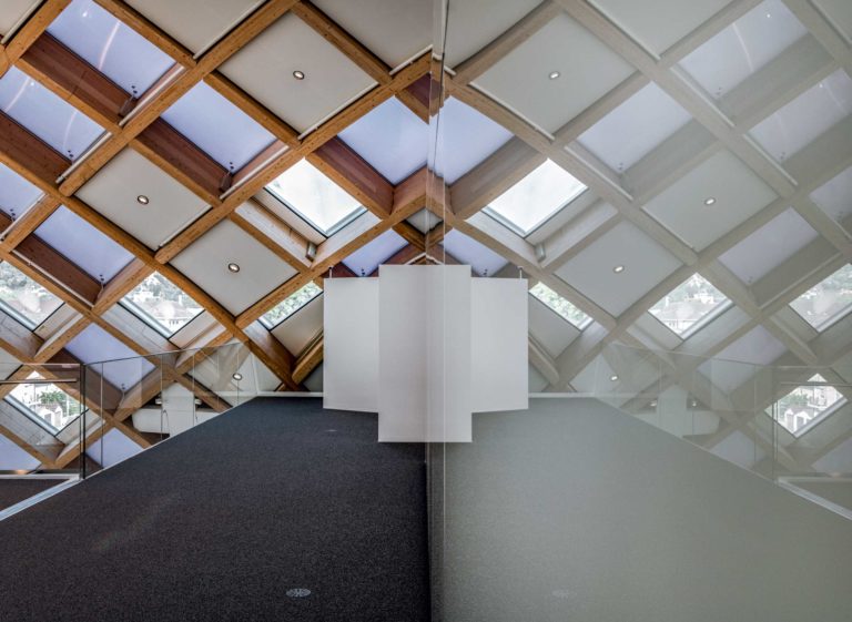 Chaque pièce a été ajustée à la perfection grâce à l’utilisation d’un système d’insertion sophistiqué. L’ossature en bois du bâtiment Swatch abritant un vaste ensemble de bureaux, elle devait également répondre à diverses exigences techniques. Un réseau complexe de câbles est discrètement intégré à sa structure.